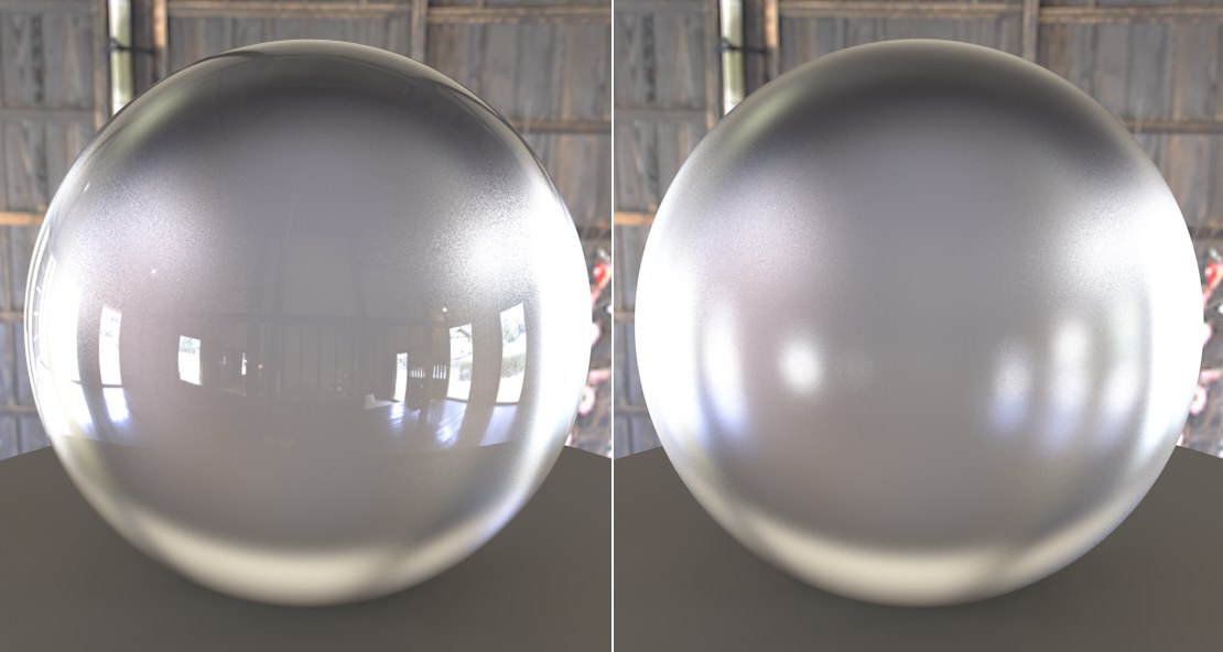 Beachten Sie, dass Sie diese Spiegeleigenschaften (Rauigkeit, Ansisotropie etc.) im Reflektivitätskanal im Tab * Transparenz * justieren können.