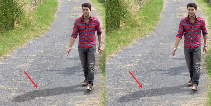 Ein eher leichter Schatten (also kleine Schattenstärkenwerte) ist in den meisten Fällen anzuraten. In der Realität gibt es praktisch nie komplett schwarze Schatten.