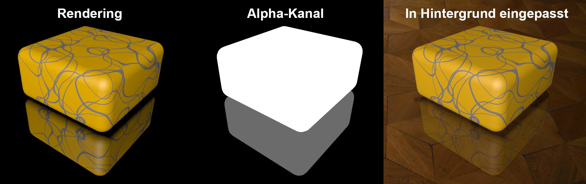 Sollen Schattenbereiche im Alpha-Kanal landen, so aktivieren Sie diese Option. Bereiche, die voll im Schatten liegen, werden voreinstellungsgemäß weiss, ohne Schatten schwarz und Teilschatten in entsprechenden Graustufen gerendert. Bei deaktivierter Option wird das ganze Objekt schwarz berechnet.
