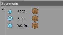 Um Objekte wieder zu löschen markieren Sie diese und drücken die Delete- oder die Backspace-Taste. Dadurch werden auch die Material-Tags am Objekt wieder gelöscht.