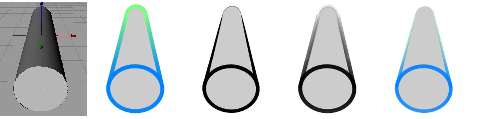 Der Sichtwinkel-Modifikator beeinflusst die Farbe, Dicke oder die Deckkraft auf Grund der Richtung, in der die Linien zur Kamera stehen. Auch verdeckte Linien sind betroffen, wenn sie sichtbar sind.