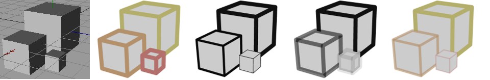 Der Distanz-Modifikator verändert Farbe, Dicke oder Deckkraft der Linien in Abhängigkeit der Entfernung zur Kamera.