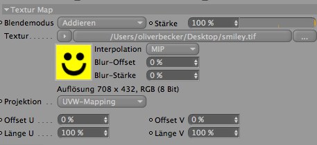 Hier legen Sie die Projektionsart der Textur fest, etwa UVW, Fläche oder Kugel-Mapping.
