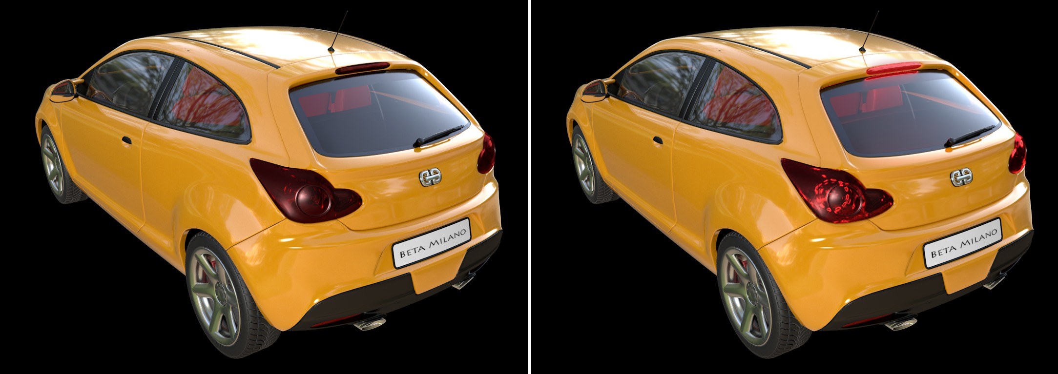 Beispiel wurden über die Abstrahlung z.B. die Bremsleuchten zum Leuchten gebracht (siehe rechte