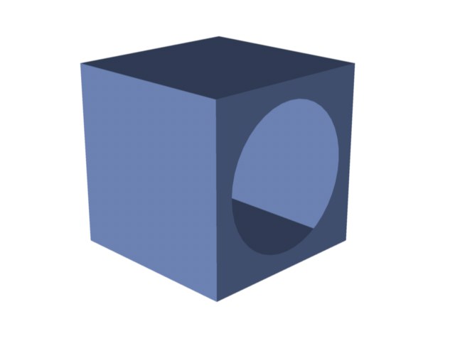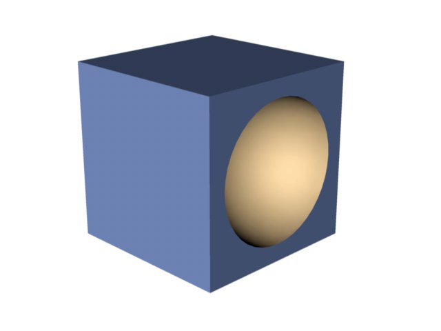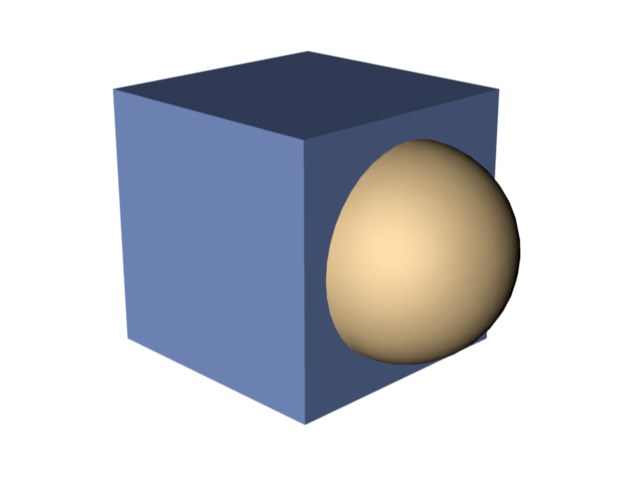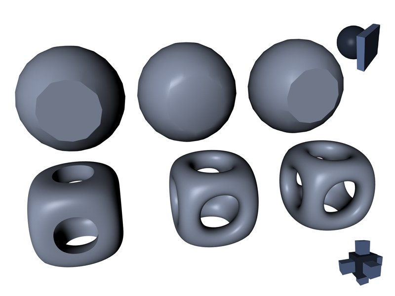 Ähnlich A minus B, ist aber eigentlich keine echte Boolesche Operation. Sie schneidet zwar auch Löcher in das Objekt A, kleidet die Löcher aber nicht aus: