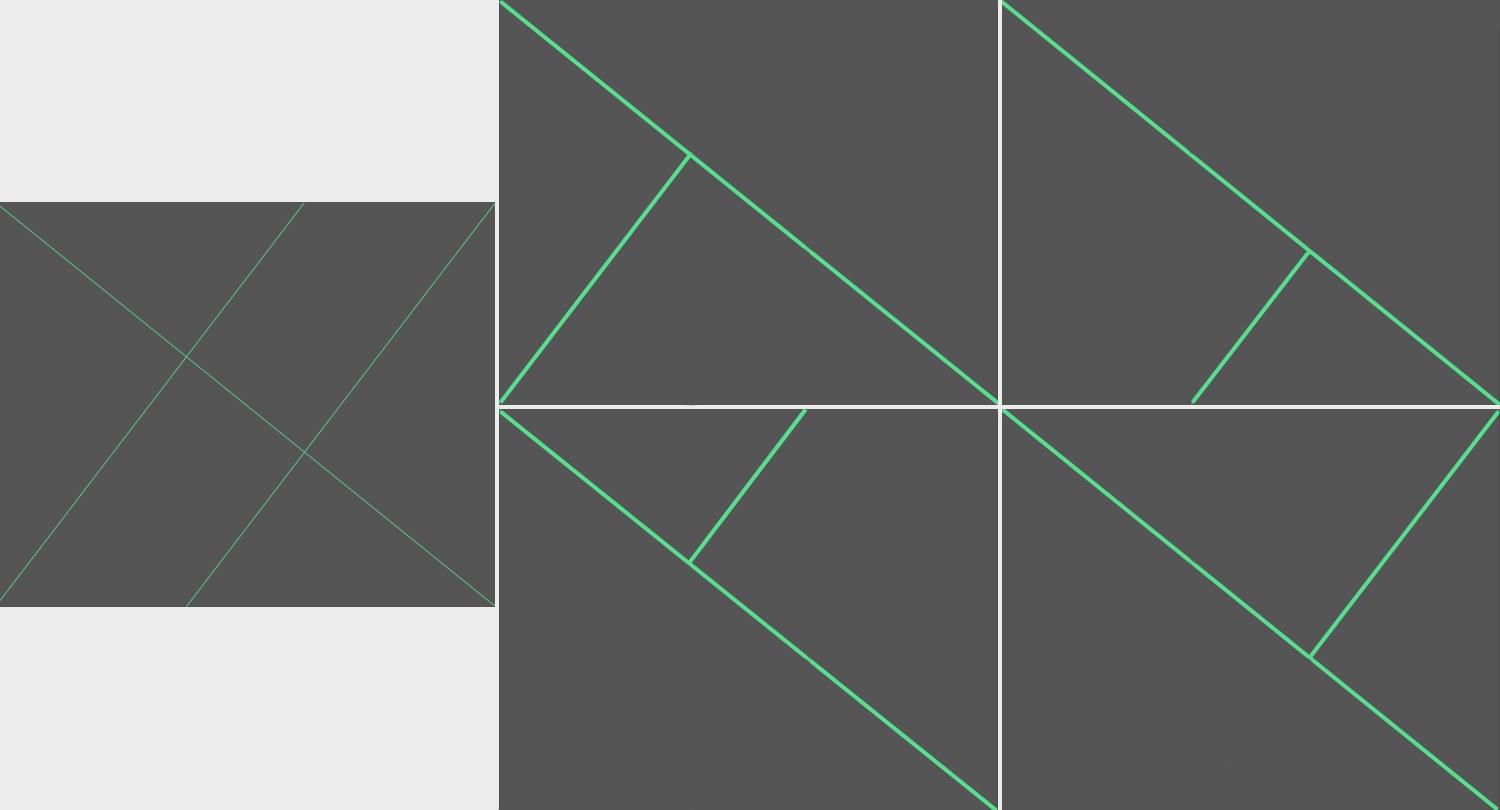 Der Modus definiert, ob die Schnittpunkte die Bildränder derart schneiden, dass erst die kurze (Modus 1) oder erst die lange (Modus 2) Strecke des Goldenen Schnitts anliegt.