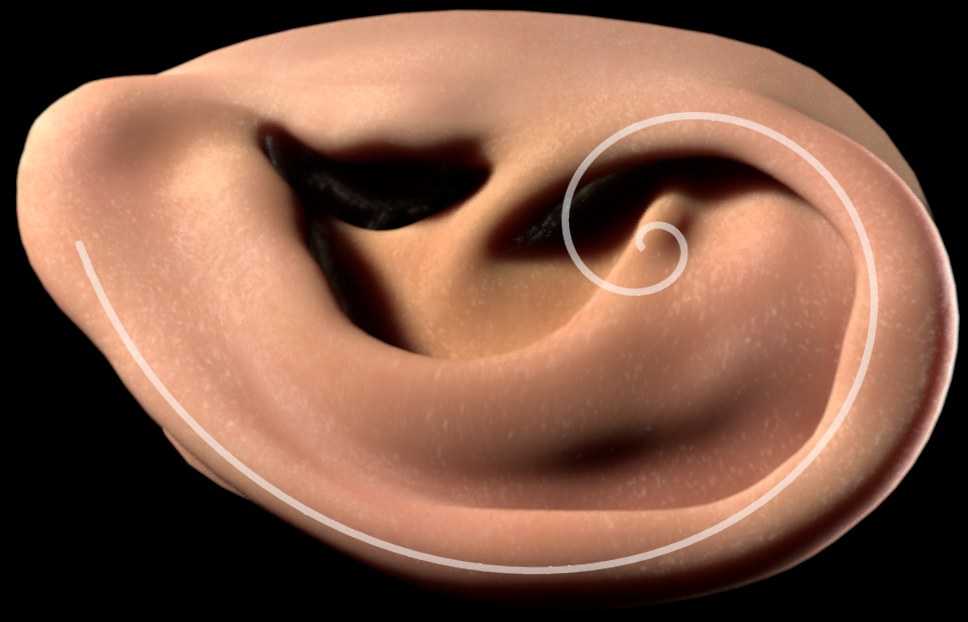 Die sog. Goldene Spirale (auch "logarithmische Spirale" oder "Fibonacci-Spirale") vergrößert mit jeder Umdrehung ihren Abstand vom Mittelpunkt um den gleichen Faktor (der wiederum dem Goldenen Schnitt entspricht). Diese Spirale kommt häufig in der Natur (Blütenstände, Pinienzapfen etc.) vor. Auch die Form menschlicher Ohren entsprechen oft in Teilen einer Goldenen Spirale: