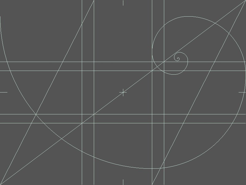 Hiermit erzeugen Sie 2 schräge Linien, deren Schnittpunkte mit den oberen oder seitlichen Bildrändern zu Strecken führen, die dem Goldenen Schnitt entsprechen.