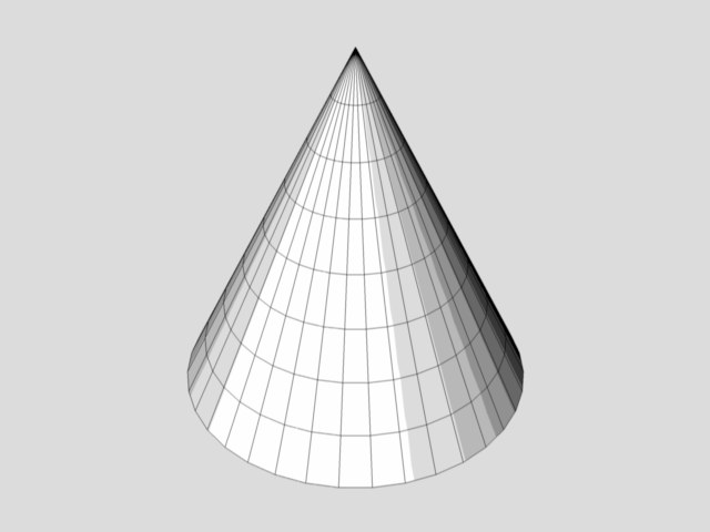 Diese Funktion erzeugt einen Kegel, dessen Bodenfläche (zunächst – siehe unten) in der XZ-Ebene liegt. Aufgrund der vielfältigen Optionen ist dieses Objekt allerdings wesentlich leistungsfähiger, als es den Anschein hat. Sie wollen einen Wassertropfen herstellen? Sie benötigen die in der Technik oft benutzten Zylinder-, Kegel- oder Kerbstifte? (siehe auch Öltank) Kein Problem – Sie finden diese Objekte u.a. in den Beispielen unten abgebildet.