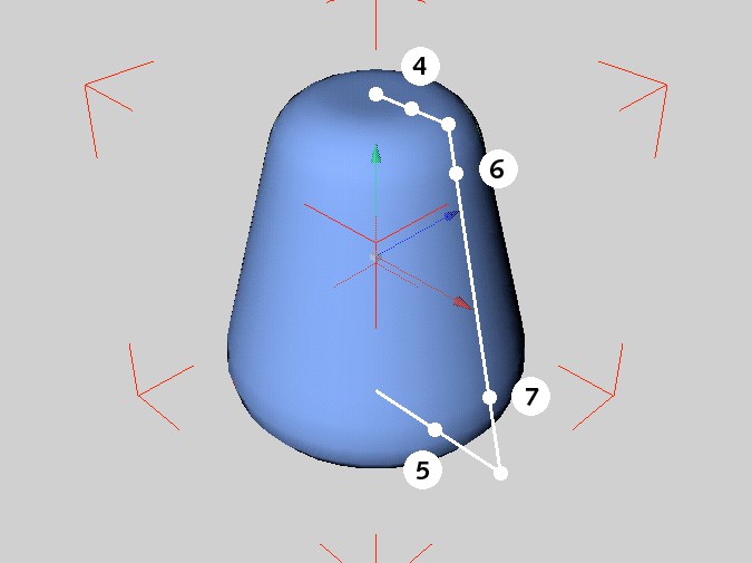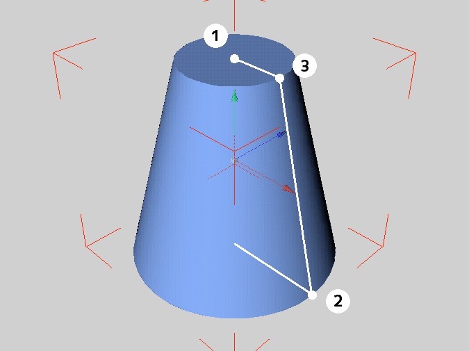 Der Kegel verfügt zunächst über drei Griffe, wobei die Griffe (1) für die Höhe und den oberen Radius (der ist ja momentan Null) (3) übereinander liegen. Wenn Sie also den oberen Radius größer als Null definieren, ergibt sich folgende Abbildung: