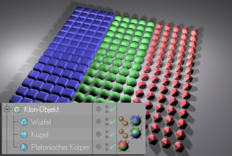 Wenn der Effektor Einfluss auf die Reihenfolge der für die Klone herangezogenen, dem Klon-Objekt untergeordneten Objekte nehmen soll, sind Sie bei diesem Parameter richtig. Das ist dann sinnvoll, wenn folgendes gilt: Sie haben dem Klon-Objekt mehrere zu klonenden Objekte untergeordnet.