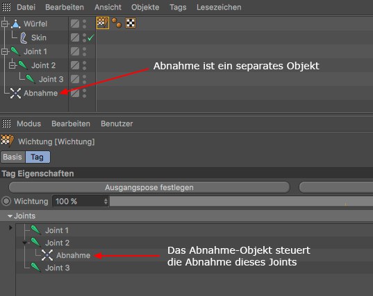 Joint gedreht wird (auch wenn das Abnahme-Objekt das Mesh komplett umhüllen würde). Ein Abnahme-Objekt ist nur
