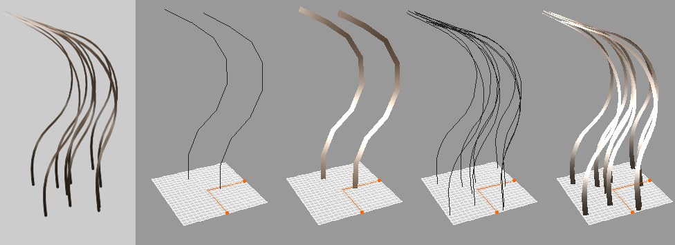 Die Haare werden im Editor als flache Polygonbänder angezeigt.