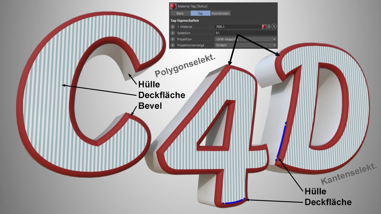 Es wäre doch praktisch, wenn Hülle, Deckflächen und Bevelflächen separat mit Materialien belegt werden könnten. Genau das kann hier auf zweierlei Arten getan werden: