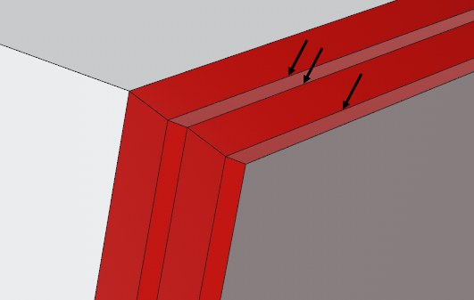 Diese Kantenselektionen werden aus den Grenzkanten zwischen Hülle und Bevelflächen gebildet.