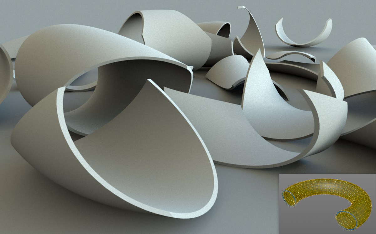 Objekt zerlegen Sie hohle Objekte: aus einem doppelwandigen Ring wird ein Scherbenhaufen (rechts unten
