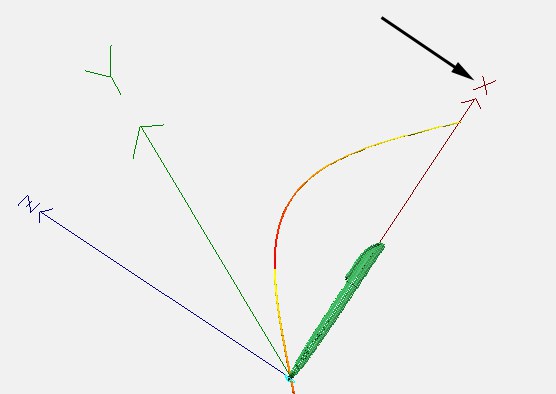 Weltkoordinatensystems. Wählen Sie also hier +X oder -X aus, wenn der Kugelschreiber längs des Splines angeordnet werden soll.