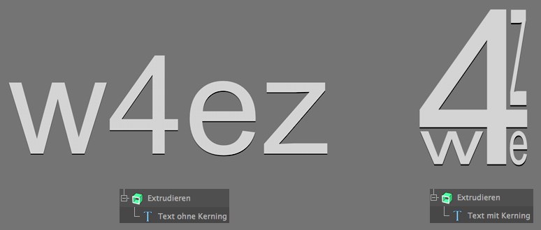 Intern verwendet das MoText-Objekt das Extrudieren-Objekt, um aus den Buchstaben dreidimensionale Objekte zu machen. Tiefe gibt dabei an, wie weit die Buchstaben in die Tiefe extrudiert werden sollen.