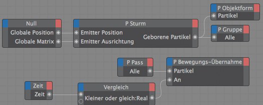 Ziehen Sie in dieses Feld das Objekt aus dem Objekt-Manager, das für die Steuerung der Partikel verwendet werden soll. Alternativ dazu können Sie auch ein Objekt über den Eingangs-Port Objekt anschließen.