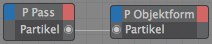 Über den P Objektform-Node können Objekte mit Partikeln verknüpft werden.