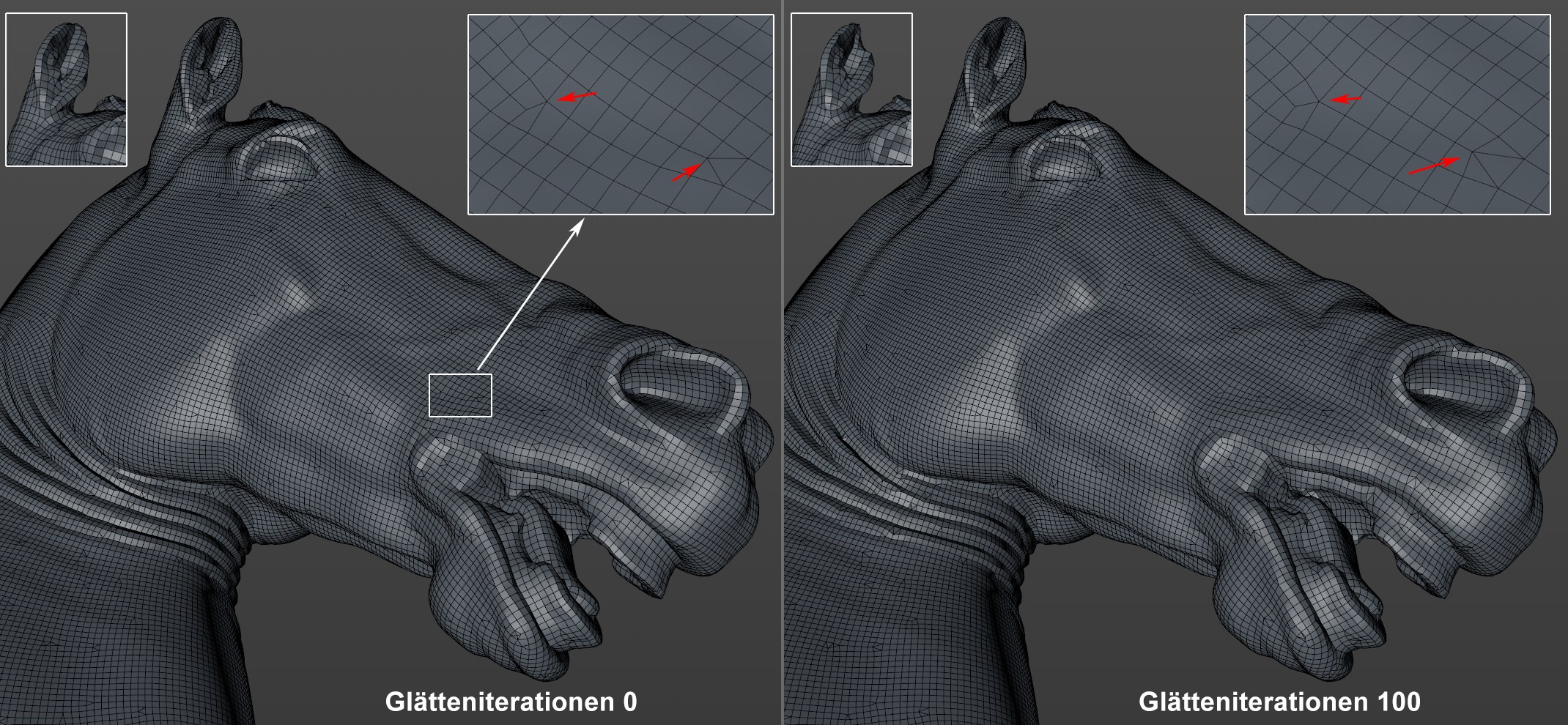 Mittels dieser Einstellung kann das Mesh in einem nachgeordneten Schritt etwas geglättet bzw. entspannt werden. Das sieht dann ungefähr so aus: