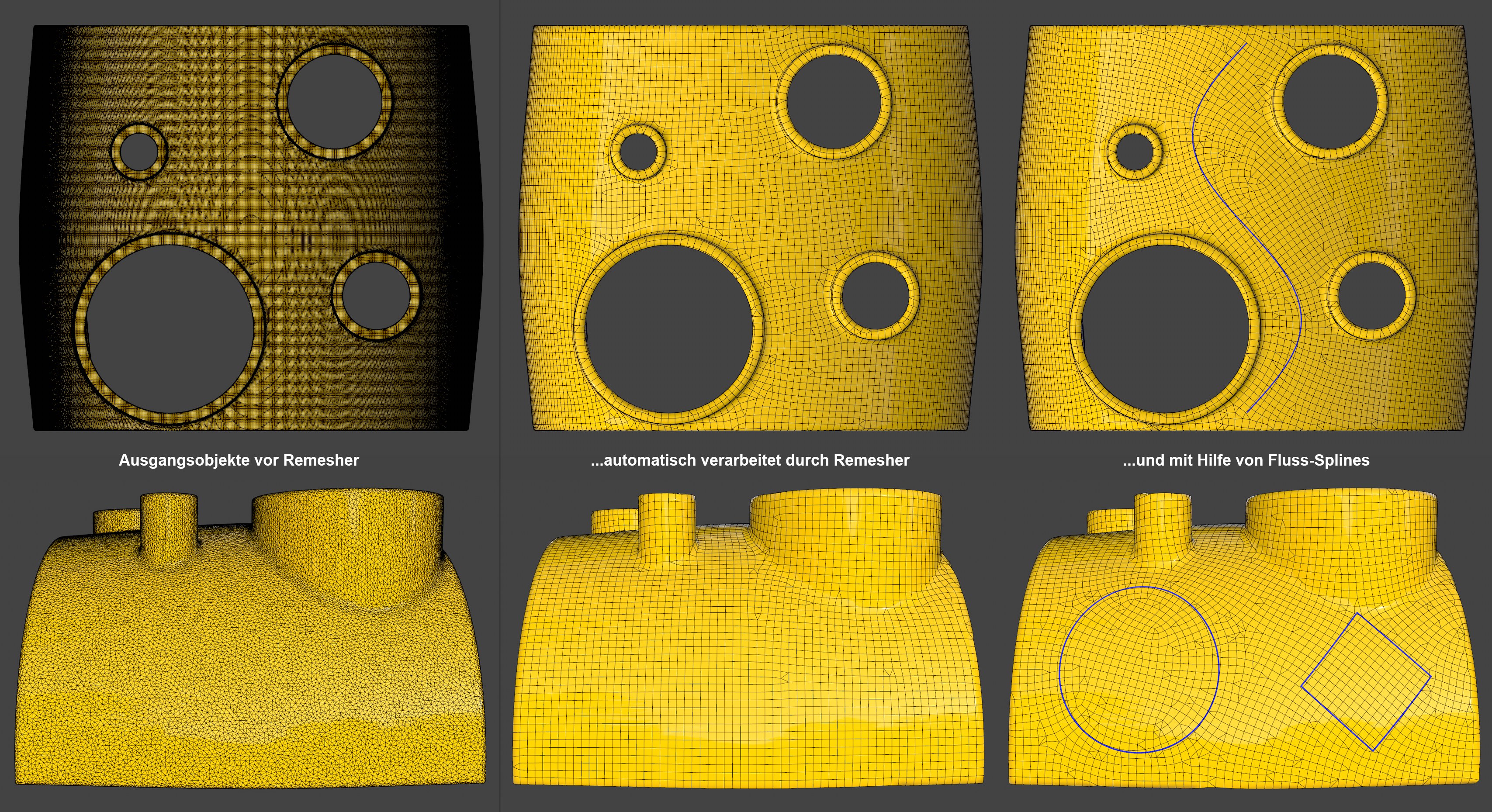 Der Remesher hat also auch einen Polygonreduktionsfunktionalität (s.a. Polygonreduktion Generator).