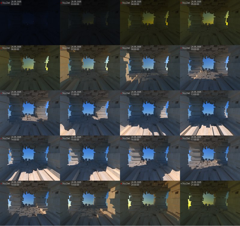 Sollten Sie diese Option aktivieren, wird stets das aktuelle Datum eingesetzt. Auch hier gilt, wie schon im vorherigen Punkt erwähnt: Sie speichern damit keinen fest definierten Szenenzustand ab, da beim Öffnen der Datei das aktuelle Datum eingesetzt wird und unter Umständen ein völlig anderer Sonnenstand berechnet wird.