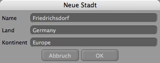 wählen Sie "Neue Stadt" aus. Es erscheint folgendes Fenster: