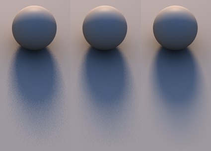 Von links nach rechts erhöhter Parameter Max. Sampleanzahl. Beachten Sie, wie der Schatten immer unkörniger und homogener