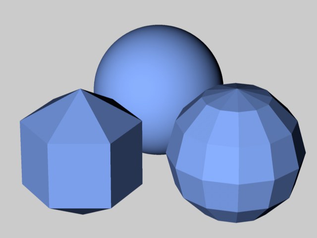 Diese hat den Vorteil, dass sie bei der Bildberechnung am besten aussieht, da nur sie wirklich rund ist. Außerdem kann sie sehr schnell berechnet werden – schneller als eine aus Flächen zusammengesetzte Kugel.