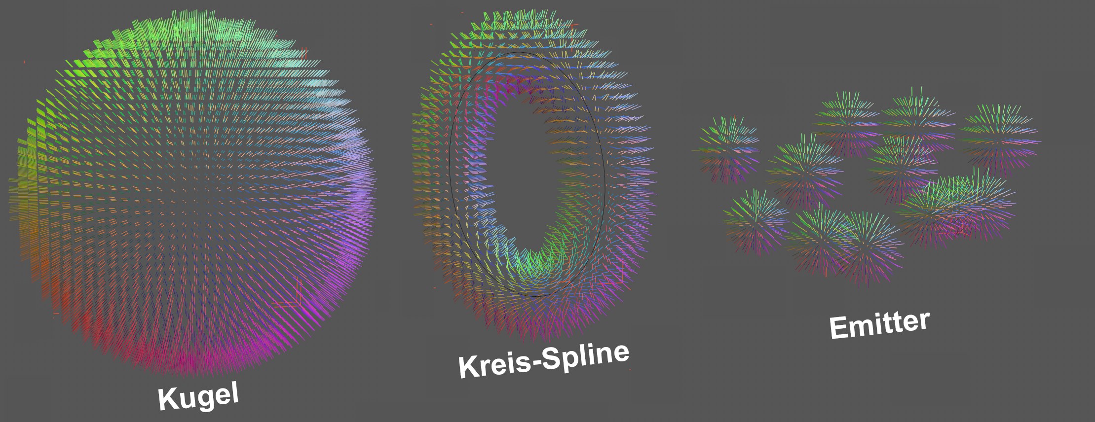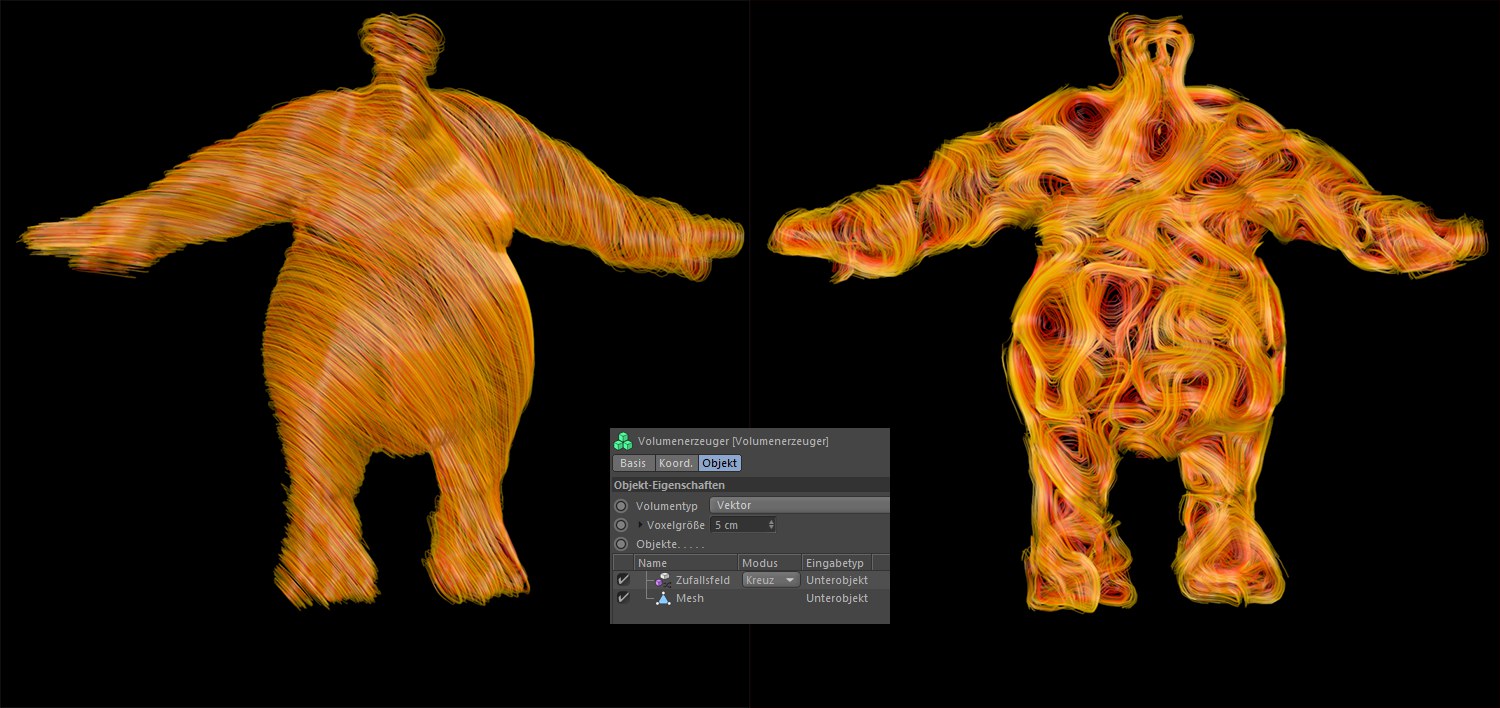 Ein anderer Funktionskomplex innerhalb von Cinema 4D – die Felder – , sind ebenfalls in der Lage, Vektoren räumlich zu steuern.