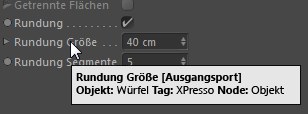 Bei XPresso-gesteuerten Parametern wird ein solcher Hilfetext eingeblendet, der Informationen über XPresso-Tags, -Nodes und -Ports gibt: