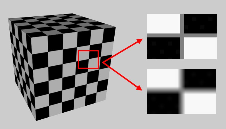 Mit dieser Technik, die intern mehrere in der Größe immer weiter reduzierte Texturabbilder vorhält und zwischen diesen überblendet, ergibt sich die beste Bildqualität im Editor: