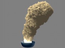Ein gutes Beispiel, in dem Sie diesen Effekt nutzen würden, wären Flammen aus einem Raketentriebwerk. Der helle und heiße Kern wäre nahe des Düsenaustritts, weiter entfernte Partikel würden abkühlen und daher dunkler sein. Der Entfernungseffekt zum Emitter kümmert sich automatisch um die Turbulenzen im Rauch. Im Beispiel des Düsentriebwerks würden kältere Partikel aufgeheizt, sobald sie wieder in den Nahbereich des Emitters gelangen.