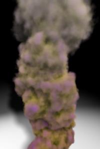 Eines der größten Features von PyroCluster ist die 3D Fraktal-Noise-Engine. Diese Render-Engine erzeugt echte volumetrische 3D-Fraktaleffekte, durch die man sich im Volumen auch tatsächlich hindurchbewegen kann. Da es sich um einen echten dreidimensionalen Effekt handelt, können Sie auch mit wenigen Partikeln (also auch wenigen Voxeln) ein großes Volumen erzeugen. Wenige große Voxel erzeugen denselben dreidimensionalen Wolken-Effekt wie viele kleine Voxel. Daher sollten Sie immer versuchen, so wenig wie möglich Partikel zu verwenden.