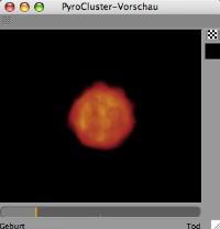 Das PyroCluster-Vorschaufenster hat drei Optionen: