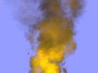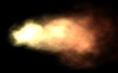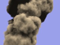 Normalerweise benutzt PyroCluster gewichtete Berechnungs-Algorithmen, um einer Szene atmosphärische Effekte hinzuzufügen. Im Allgemeinen bedeutet das, dass dichte Wolken dunkler und undurchsichtiger und dünne heller und transparenter berechnet werden. Das ist jedoch nur eine recht oberflächliche Beschreibung der Farb-Mischmethoden, die in PyroCluster verwendet werden. Die benutzten Algorithmen sind viel komplexer. Ihre Beschreibung würde den Rahmen dieser Anleitung bei weitem sprengen (Bumm!). Es gibt unzählige einzigartige Wechselwirkungen zwischen der Beleuchtung von außen und dem Eigenleuchten – zwischen jedem einzelnen Pixel in einer vorgegebenen Wolke!