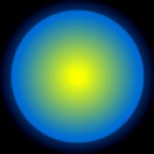 Nachfolgend sehen Sie einen Farbverlauf von gelb nach blau. Der daraus resultierende Partikel ist darunter zu sehen (in etwa 200-facher Vergrößerung).