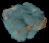 Der Dichte-Wert ist also ein zusätzlicher globaler Transparenz-Regler für das Volumen. Denken Sie daran, dass wenn Sie 100 Partikel mit einer Dichte von 50 haben, Sie möglicherweise durch die Wolke hindurchsehen können. Durch Erhöhen der Partikel-Anzahl bei gleichbleibendem Volumen erhalten Sie eine dichtere Wolke.