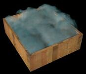 Im unten stehenden Beispiel sehen Sie Rauch in einer hölzernen Kiste. Im linken Bild wird keine Durchdringungs-Abfrage benutzt. Der Rauch kümmert sich nicht um die begrenzenden Wände. Das ist natürlich völlig unrealistisch. Im rechten Bild scheint der Rauch wirklich von den Wänden zurückgehalten zu werden. Das Resultat eines Mausklicks. Die Durchdringungsabfrage sorgt dafür, dass der Rauch nur dort ist, wo er sein darf. Wie weiter oben beschrieben dauert das einige Sekunden mehr, aber das Resultat spricht für sich.