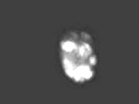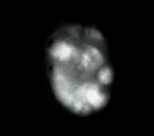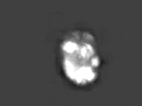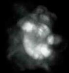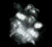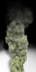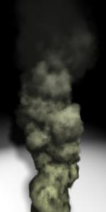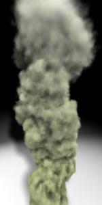 In diesem Beispiel sehen Sie eine Rauchwolke, die auf grauem Hintergrund berechnet wurde. Es existiert ein Spotlicht, welches das Volumen im Rauch beleuchtet. Wie Sie sehen können, bestehen die Abnahmebereiche aus reinem Schwarz. Die Transparenz-Korrektur hilft bei der Verminderung von Bereichen, die im Volumen kein Licht empfangen.
