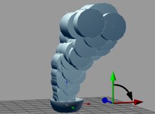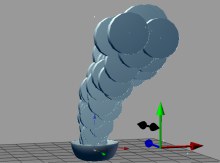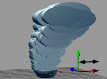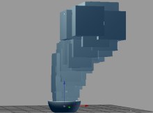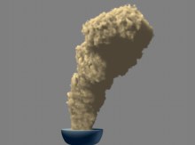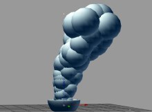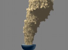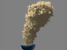 Normalerweise benutzt PyroCluster kugelförmige Volumina, um die Wolkeneffekte zu berechnen. Wenn Sie aber wollen, können Sie natürlich auch andere Formen wählen, um den Volumeneffekt zu berechnen. Bei allen nicht-kugeligen Geometrien macht es Sinn, die Möglichkeit der Rotation in PyroCluster zu benutzen.