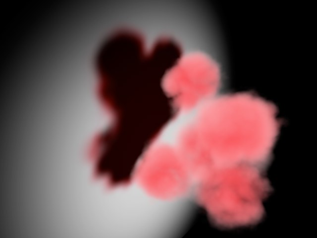 Hier sehen Sie aufgehellte bzw. abgedunkelte Bereiche in der Mitte der Rauchwolke.
