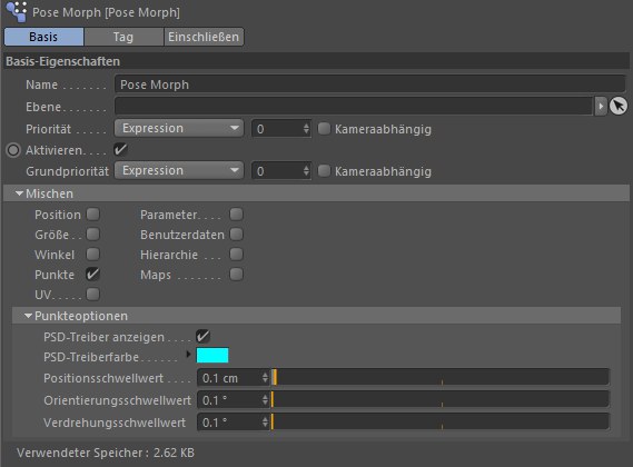 Seit Cinema 4D 12 ist das alte Morph-Tag und das Posemixer-Tag im neuen Pose-Morph-Tag zusammengefasst worden. Dieses ist jetzt mächtiger als je zuvor, da es auch eine Menge neuer Funktionalität aufweist.