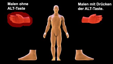 Es gibt 4 Mal-Modi, mit denen Sie beliebig geformte Hot Spots malen können. Allen gemeinsam ist ihr Verhalten und ihre Tastaturkürzel: