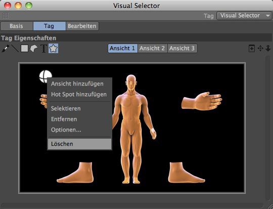Dieser Befehl erzeugt für die selektierte Ansicht einen neuen Hot Spot.Wenn Sie Objekte per Drag&Drop aus dem Objekt-Manager reinziehen, werden Hot Spots automatisch erzeugt.