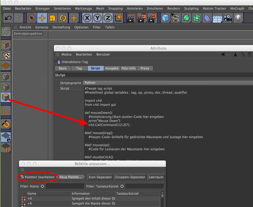 In diesem Tab können Sie allerhand Befehle oder Aktionen auslösen, die aufgerufen werden, wenn Sie