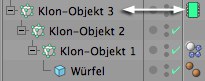 Gebackene MoGraph-Cache-Tags können auf andere klonerzeugende Objekte (kopiert/verschoben werden. Das ist ganz praktisch, wenn Sie eine Effektorwirkung oder eine MoDynamics-Simulation mit schneller zu berechnenden und darzustellenden Ersatzobjekten (z.B. simplen Würfeln) berechnen lassen, diese backen und das Tag dann einfach einem gleichartigen klonerzeugenden Objekt zuweisen, das dann das zu rendernde hochpolygonige Objekt enthält.