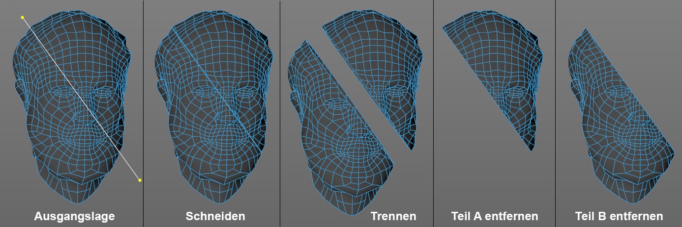 Bei aktivierter Option werden nur sichtbare Kanten und Polygone geschnitten; also keine Rückseiten. Durch andere Objekte verdeckte Bereiche zählen hierbei nicht.
