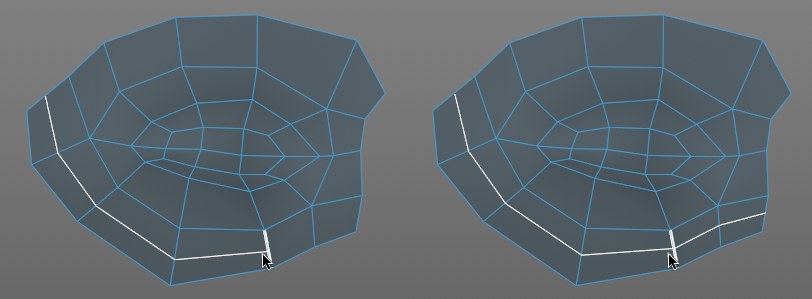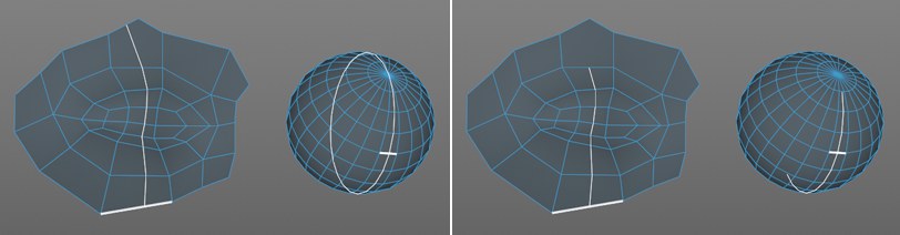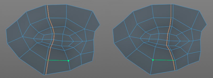 Definieren Sie mit diesen beiden Optionen, ob die Looperkennung bei Erreichen eines N-Gons bzw. Pols den Schnitt abbricht (Optionen aktiviert) bzw. über diese hinaus reicht (Optionen deaktiviert).